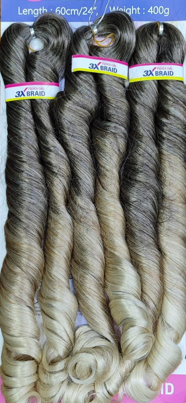 Cabelo French Braid para aplicação croche 400g com pontas cacheadas T4/27/613
