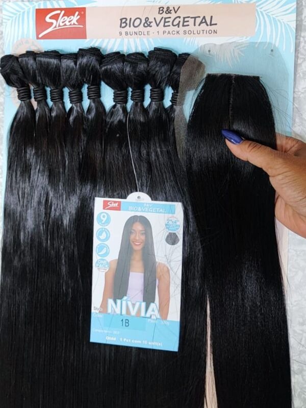 Cabelo Liso em fibra com top closure Preto Modelo Nivia para entrelaçamento ou confecção de peruca