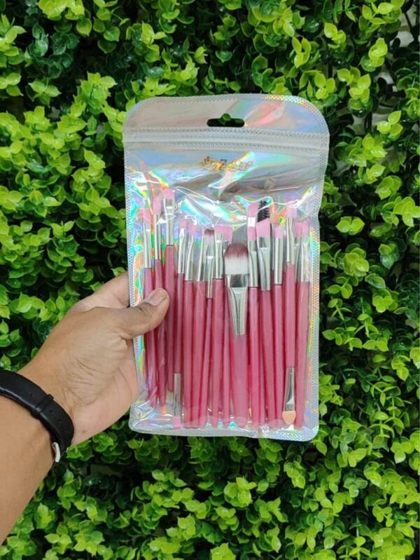 kit com 20 pinceis de maquiagem para o rosto sombras e cilios cabo rosa