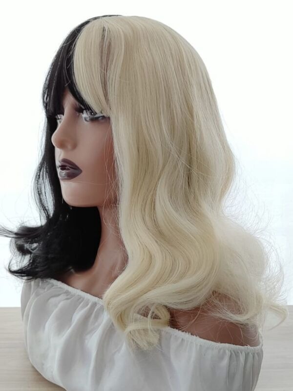 Peruca duas cores loira platinada com preto com franja para compor estilo it girl